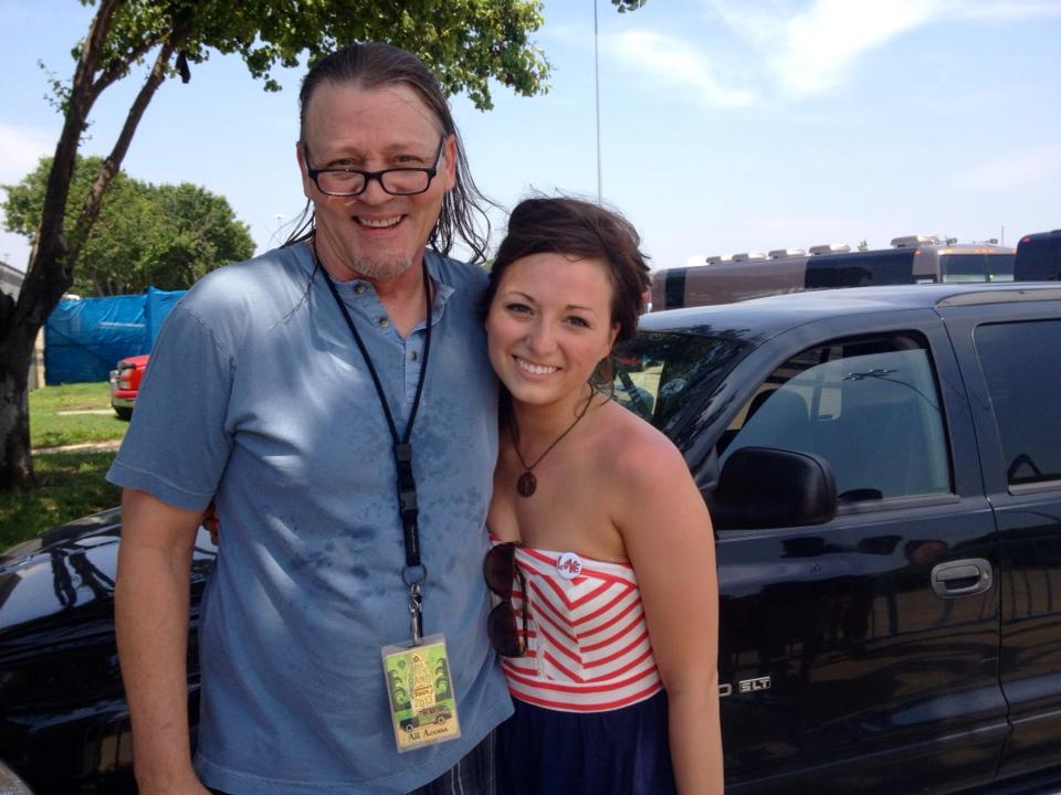 The hours progressed, the sun beat down harder and the nerves got more intense, Nidhi and I decided to take a stroll around the venue to stretch our legs and get some fresh breeze to take away from the humidity. We happened to find ourselves in the presence of bus driver Jerry! Excitedly I ran over, gave him a big ole’ hug and asked him if he would sign my copy of his book “Tales from the Trails of a Rock ‘n’ Roll Bus Driver.” He laughed and said of course. We chatted for a few minutes under the steamy Texas sun until he bid farewell and went on with his show day tasks.