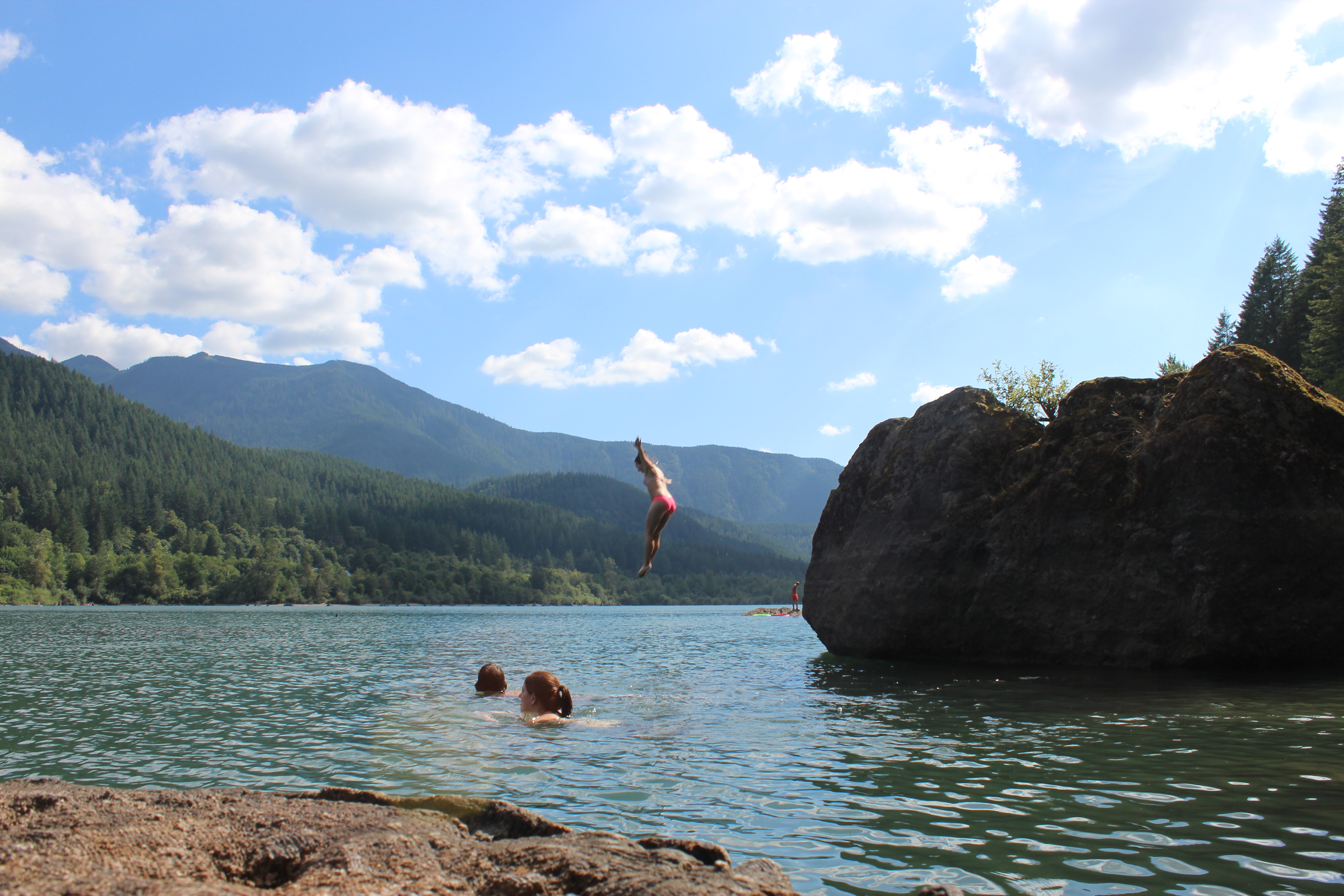 We swam along the shore and found a giant bolder that was perfect for a little “mini cliff jumping.” I’ve never done actual cliff jumping because last year when we were going to go, the cliffs were blocked out on account of “danger” *eye roll, ha* Even though it wasn’t so high, it was nerve wracking because of the horror stories people tell. C would remind me that we were “tough mudder training” and then proceed to yell our favorite one-liner, “do it, man!” We swam and jumped for the rest of the afternoon before deciding that we had spent almost all our daylight hours soaking up this beautiful escape. Overall, it was one of those days, where you just want to forever stay in a moment. To soak it all in, and re-live it’s glory over and over. I guess, moments and days like these are exactly what makes life so awesome and sweet.
