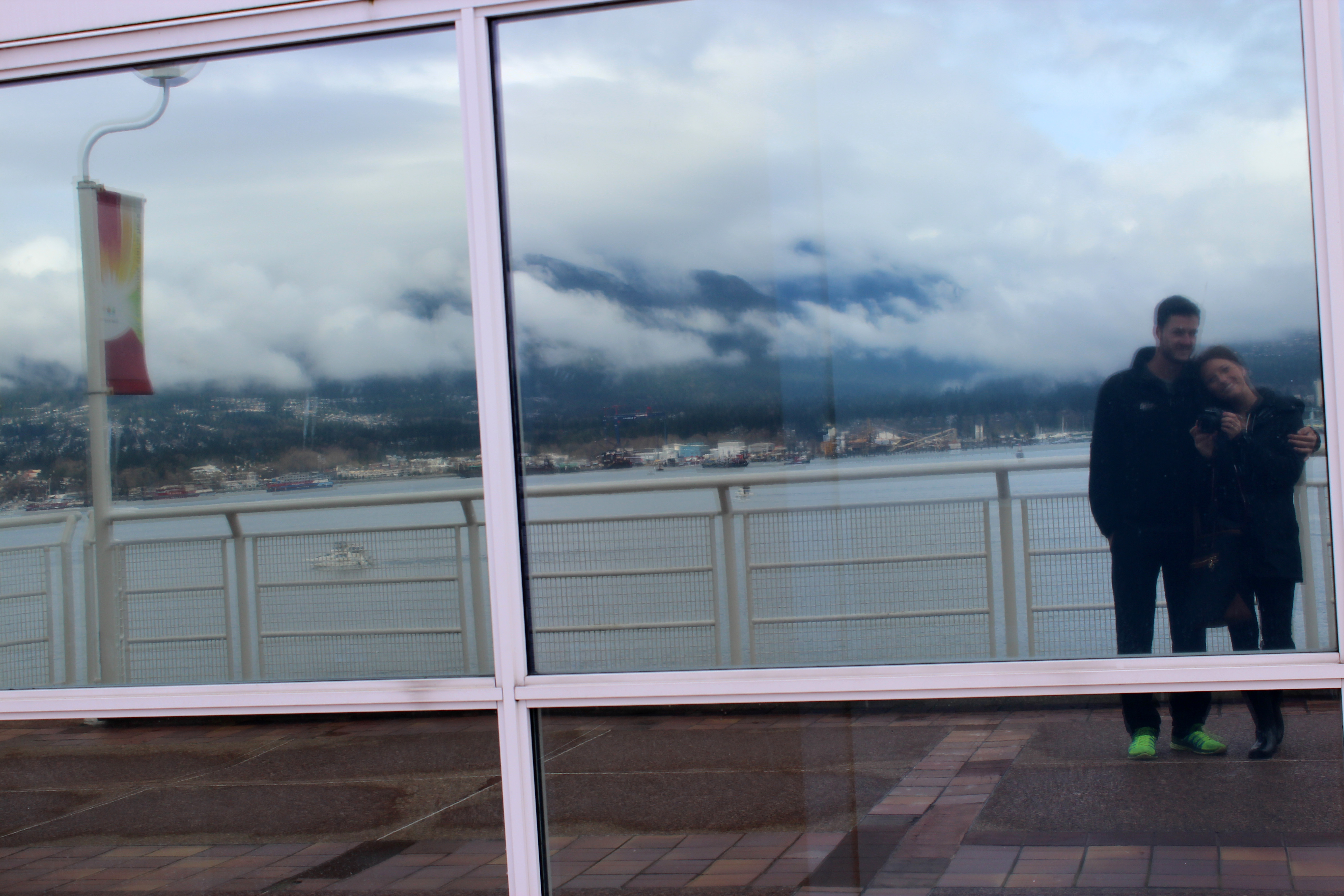 After window-shopping for a bit, we walked a few blocks up the water to Canada Place. Here, we could walk a bit out into the water and get a better view of the ships, water planes and cityscape. The two of us are always in search of a background to capture our perfect photo. We want to recreate our favorite pose in every city that we adventure together. Unfortunately for us, the high rails were proving to be quite difficult to get the image we had desired. Nonetheless, despite the rainy day, the way the clouds tumbled in over the waterfront created a beautiful contrast of textures and colors.