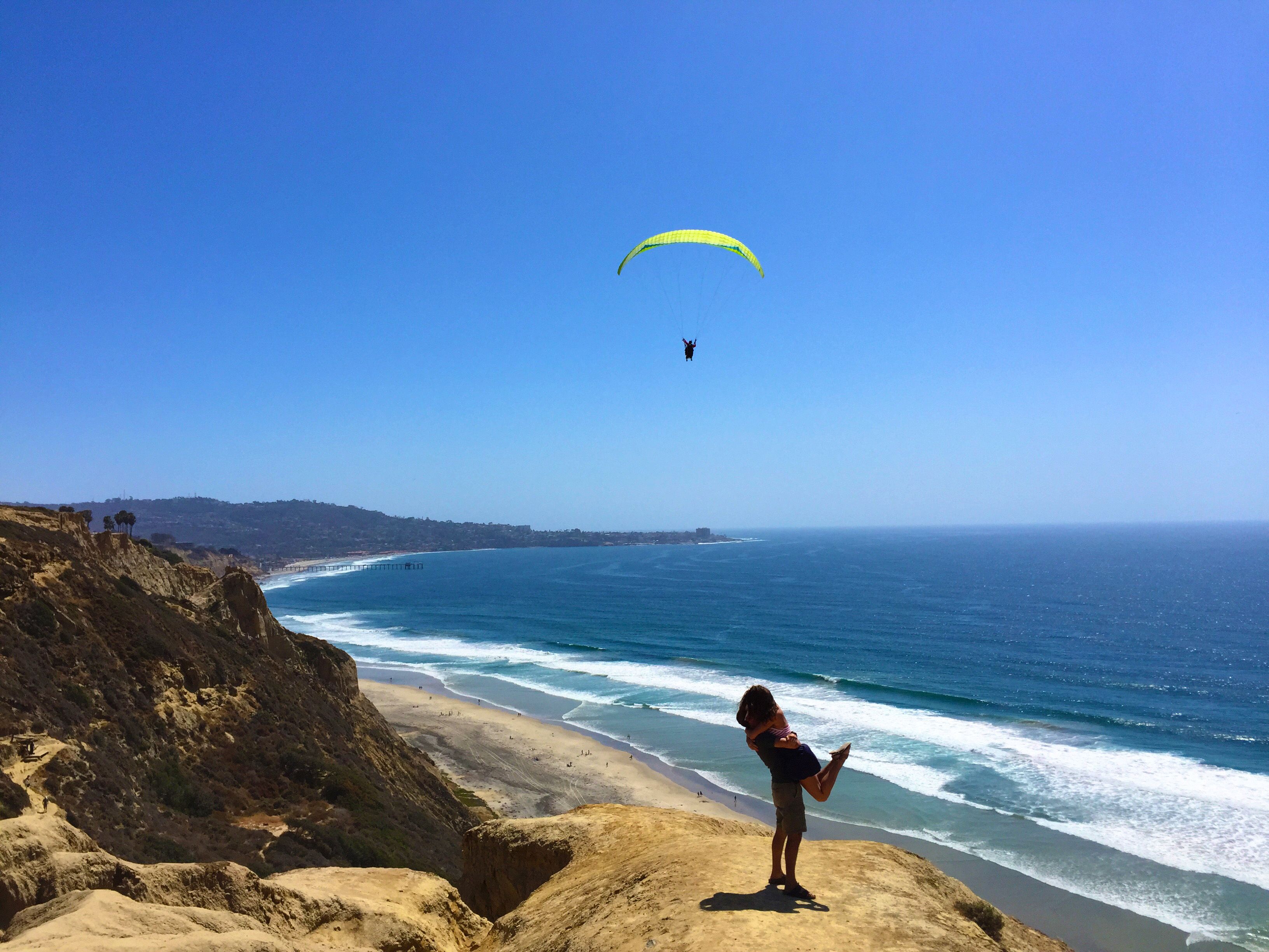 We had absolutely no agenda for the day other than soaking up the sunshine. Dave kept following the road, turning whenever he pleased with no real destination in mind. We found ourselves at Torrey Pines Gliderport. Overlooking San Diego and the beaches below, it’s amazing how places can quickly remind you just how small you are. How large this earth is and how much there is for us to see and discover. While we were looking out, there were paragliders taking off, floating around and landing. I loved the way their parachutes providing a striking contrast against the blues of the sky and ocean and natural hues of the rocks, sand and land.