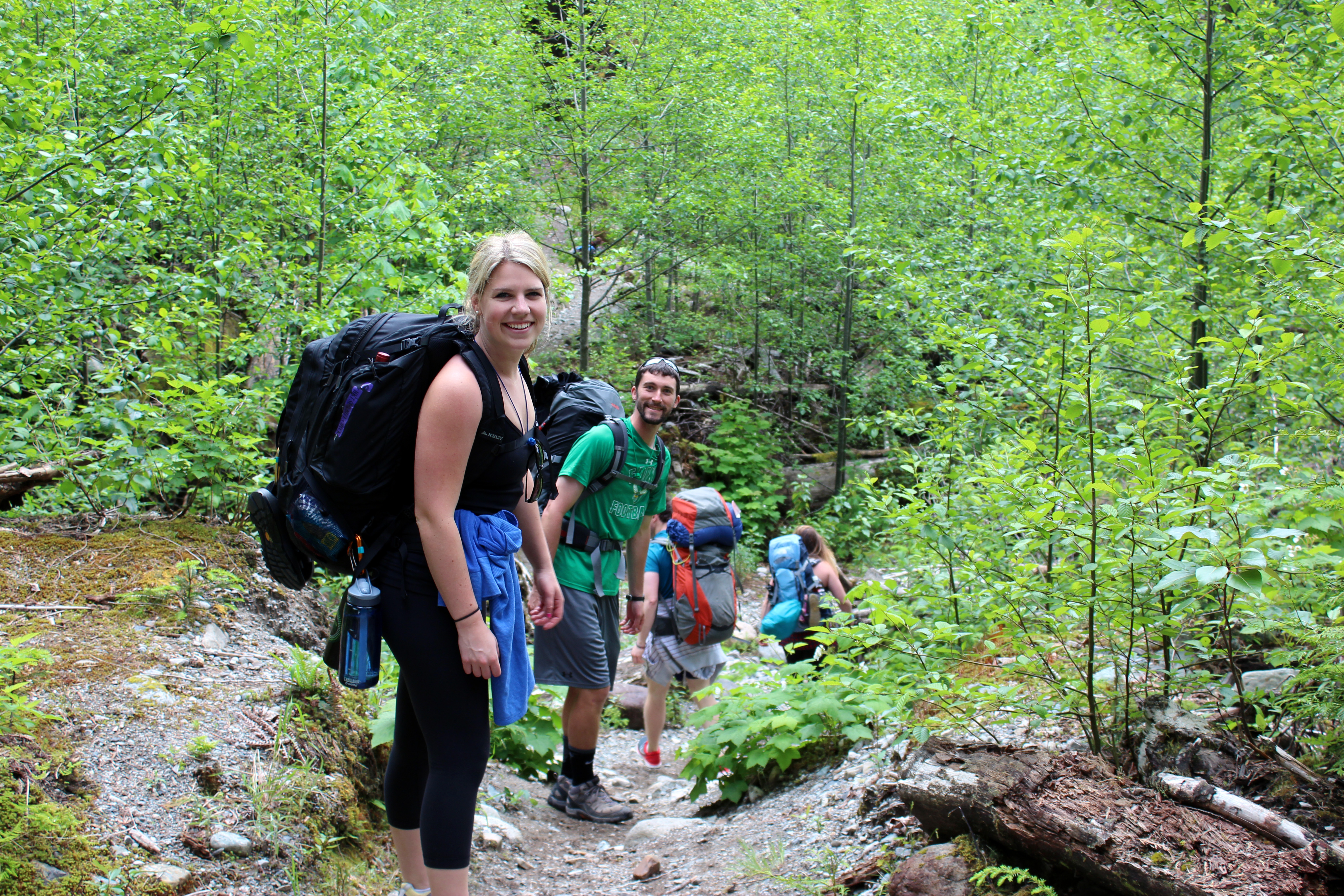 The early bird gets the worm, or so the saying goes. Up with the sun, the three of us girls, Libby, Kathleen and myself, were ready and excited for the hiking and camping that was ahead of us. We quickly packed up our packs, purchased bagels and coffee and headed to meet up with the boys at Dan’s place. The sky was cloudy and grey with the occasional rain droplets forming on the windshield. The weather had promised no rain for the weekend but I wasn’t about to hold my breath for that one.