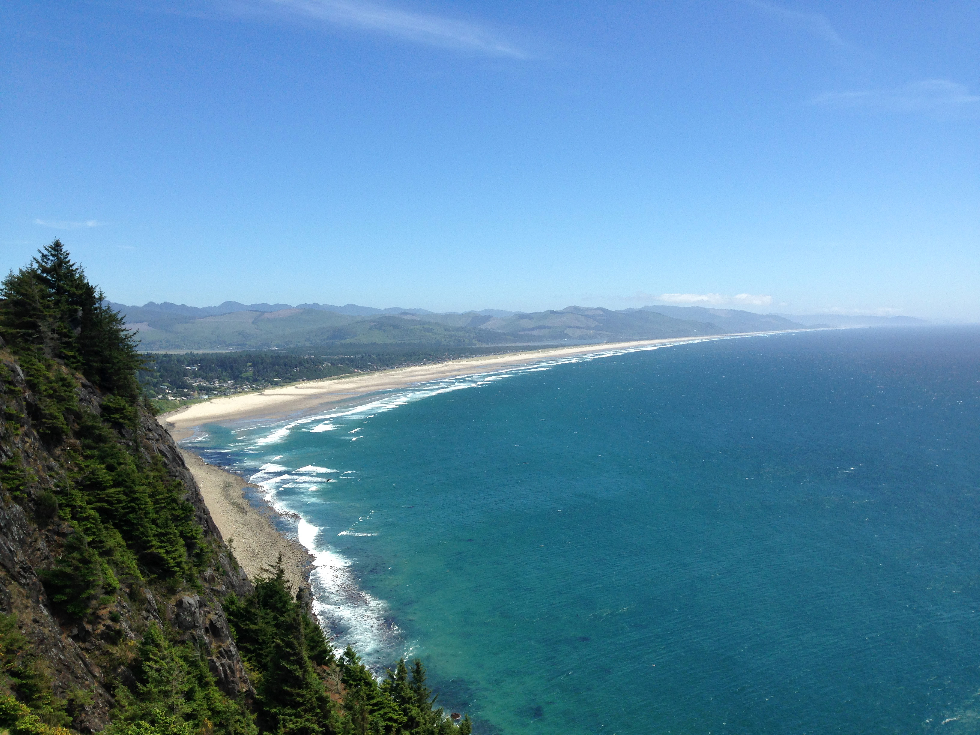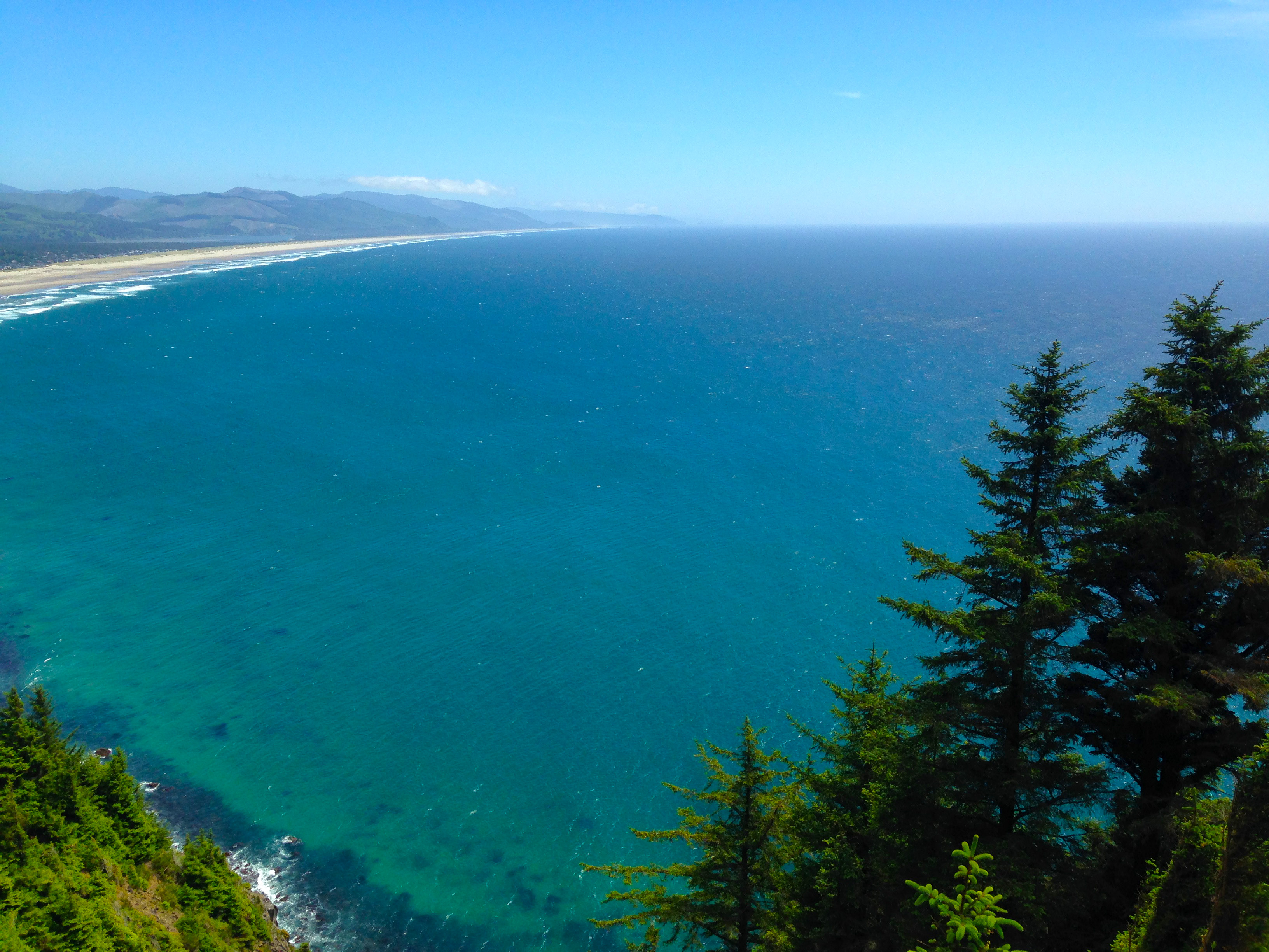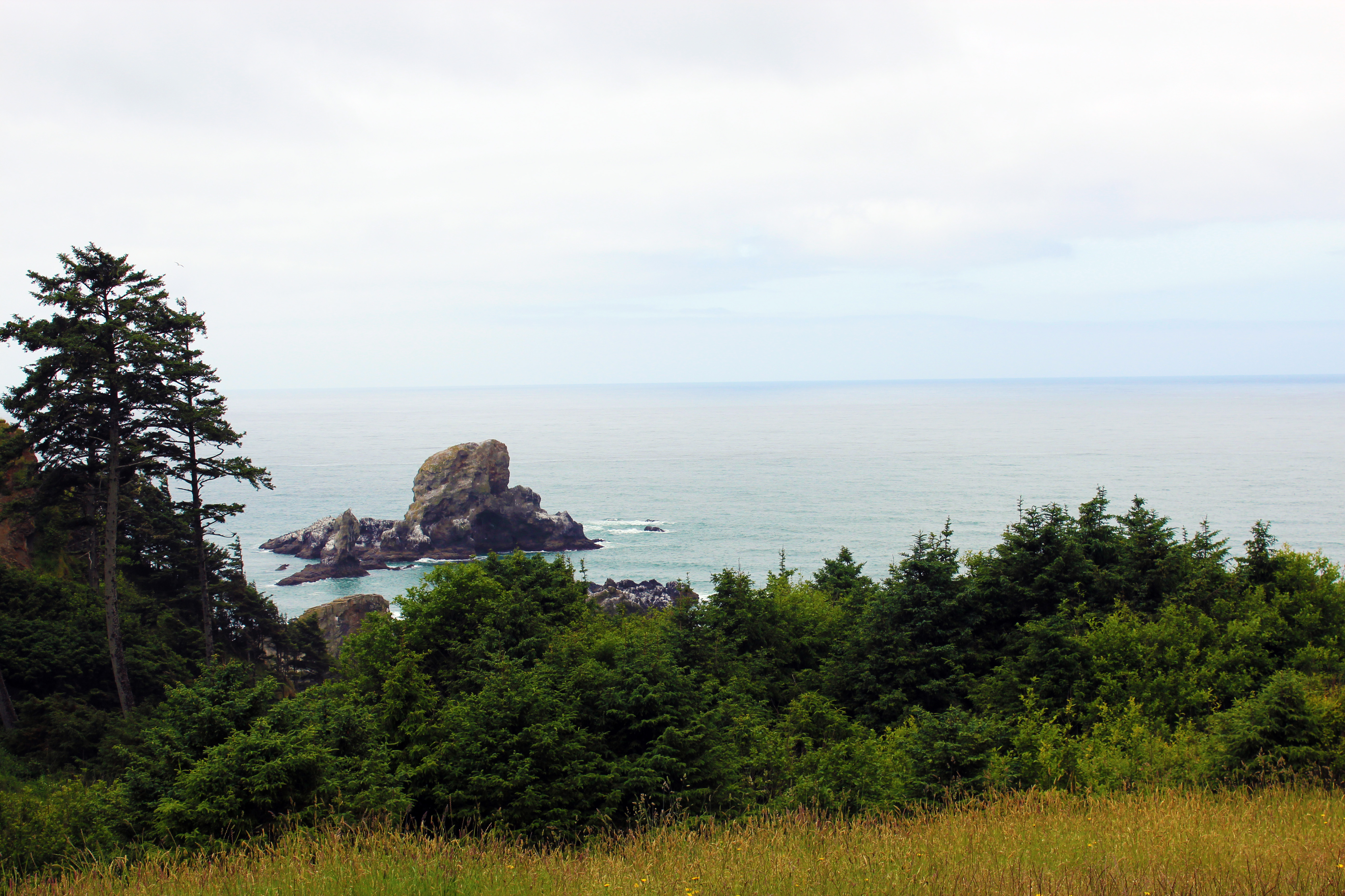 Up, down and all around, we drove on the paved path until we found the break in the trees. Emerging, we both were silent then collectively gasped and let out an unplanned, “WOW.” Before us was the stunning Oregon Coastline. The sun was hiding behind the clouds so a small overcast was placed upon the beaches, creating a slightly gloomy feel. The natural beauty however, was stronger than any overcast could be. Despite the lack of bright sunlight we could see the beautiful rock formations, the endless beach and the blue hues that collided earth to sky.